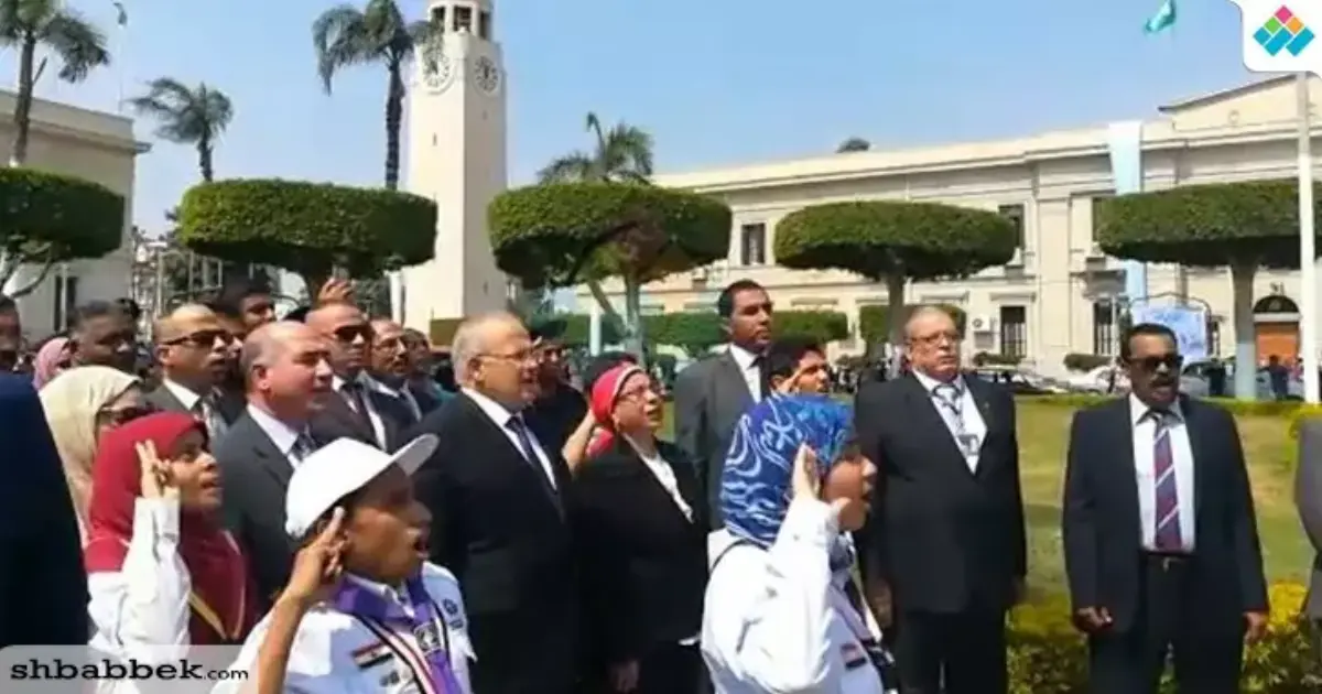 رئيس جامعة القاهرة يردد النشيد الوطني ويرفع العلم الجمهوري «فيديو»