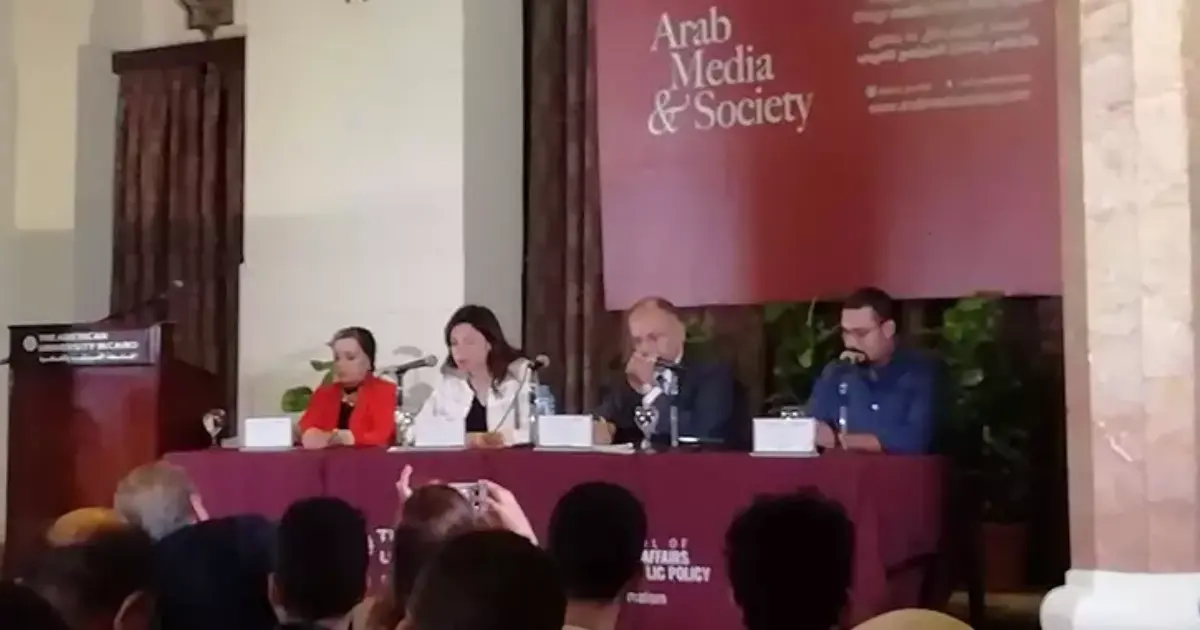 أدار الندوة الأستاذ المساعد بقسم الصحافة والإعلام بالجامعة الأمريكية بالقاهرة، الدكتورة رشا علام.