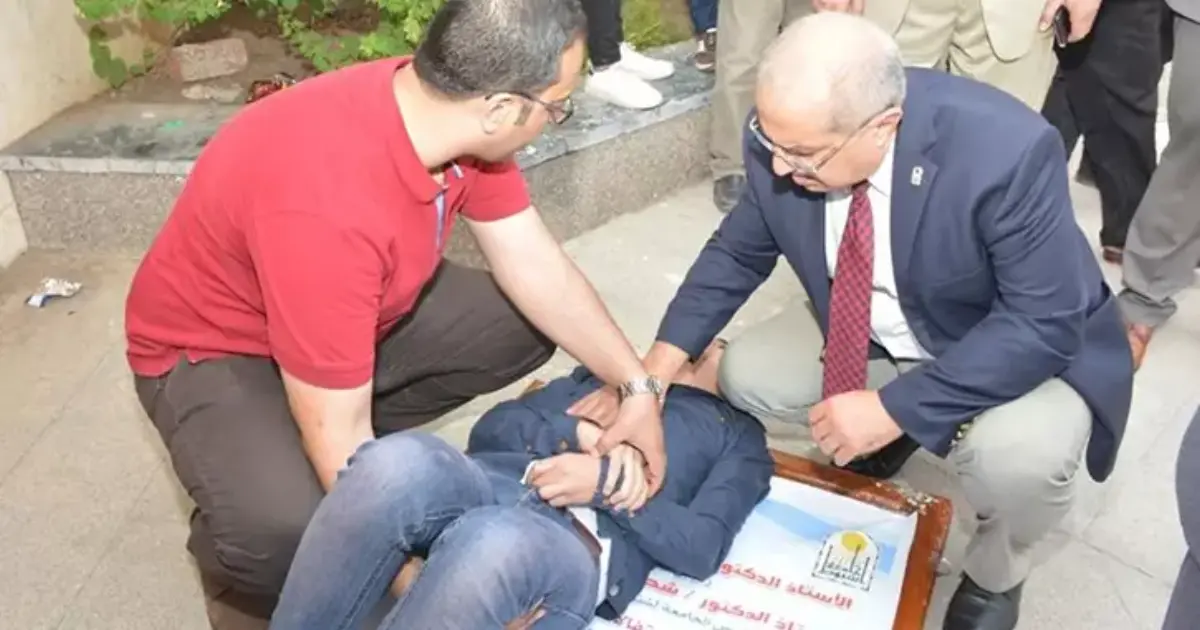 ووصلت سيارة الإسعاف ونقلت الطالب إلى الطالب إلى مستشفى أسيوط الجامعي، وأمر رئيس الجامعة بإجراء فحص شامل وكامل على الطالب وإجراء ما يلزم له.