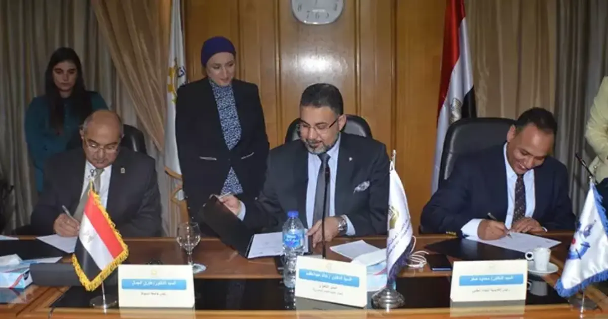 وقعت جامعة أسيوط وأكاديمية البحث العلمي واتحاد الصناعات المصرية، بروتوكول تعاون ثلاثي؛ لإنشاء مكتب لتقديم خدمات البحث والتطوير والصيانة والحلول الهندسية والتدريب لأعضاء الغرف الصناعية والمجتمع الصناعي.