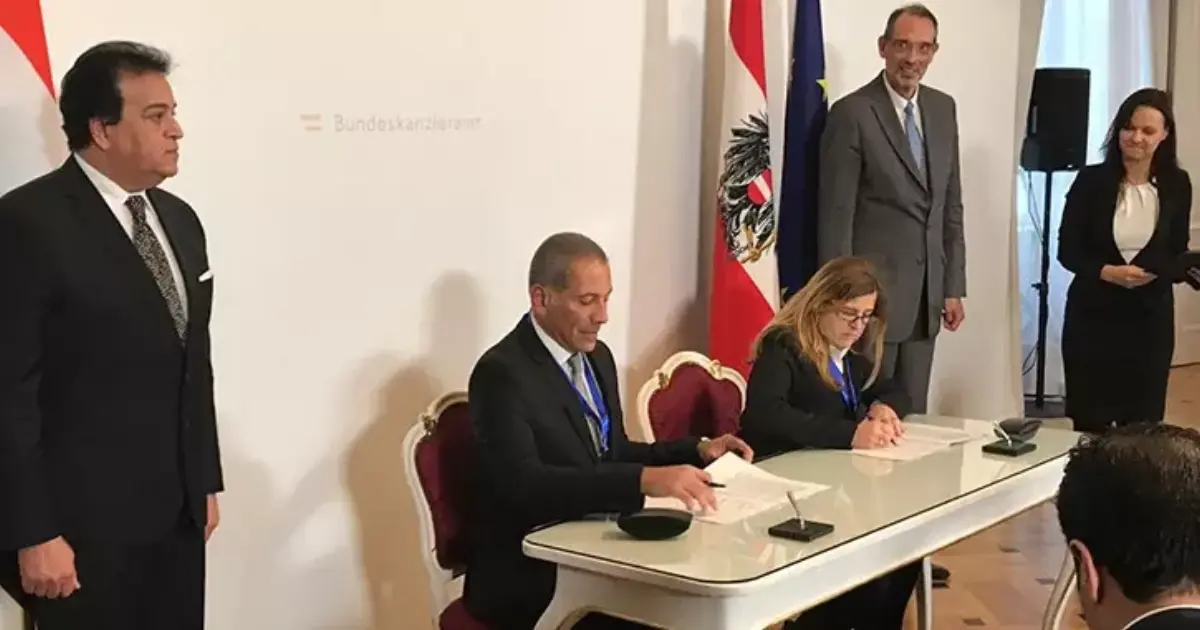 وقع المهندس محمد الرشيدي رئيس مجلس أمناء جامعة النهضة، عقد شراكة بين جامعة فيينا الطبية، وكلية الطب جامعة النهضة، في مجالات التطوير والإنشاء والبحث العلمي والمناهج والتوأمة.