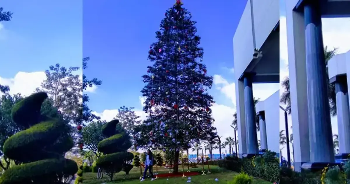 وأنشأت جامعة مصر شجرة الكريسماس للاحتفال بعيد الميلاد، أمام الباب الرئيسي للأوبرا، داخل حديقة الساعة.