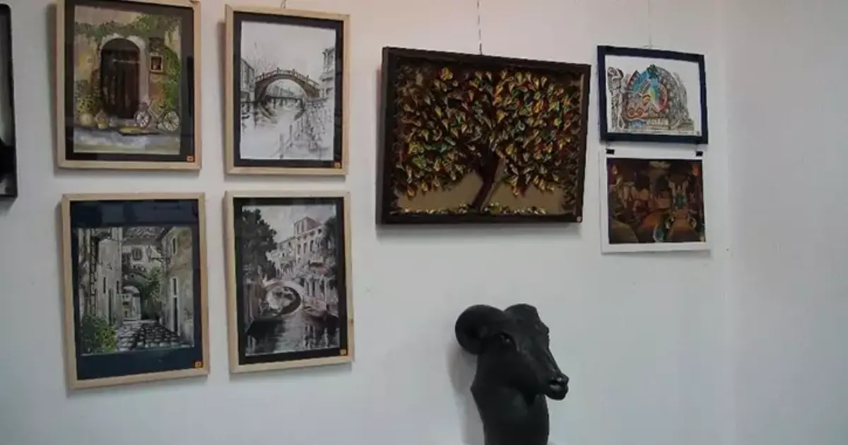 كما شمل أعمال فنية نحتية وخزفية وطباعة وتشكيل بالمعادن إلي جانب لوحات التصوير الزيتي.