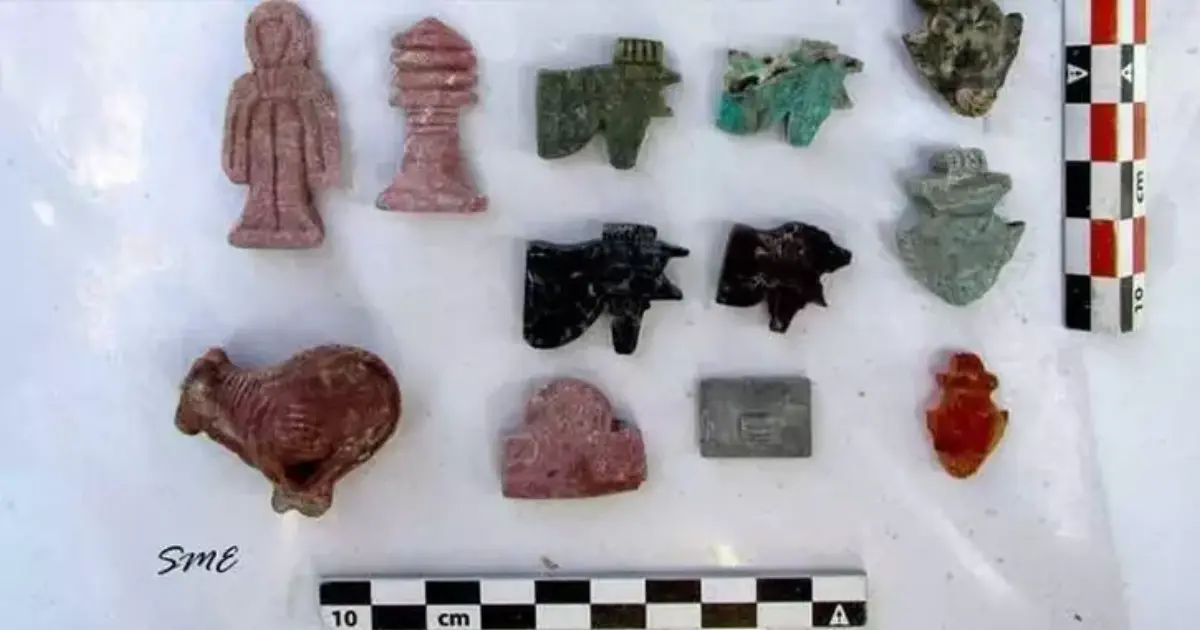 وذكرت وزارة الآثار أن بعض التمائم على شكل إيزيس وحورس وتاورت والقلب.
