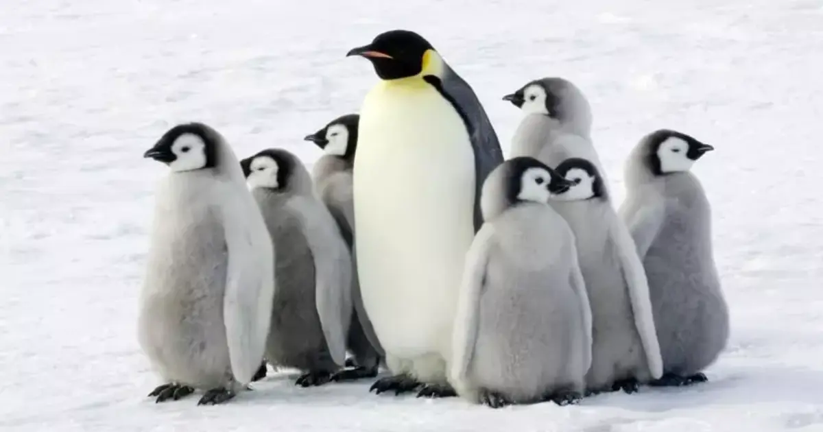 في مستعمرات البطاريق يحرص الأباء على تجميع الصغار متجاورين لحمايتهم من الطقس السيء.