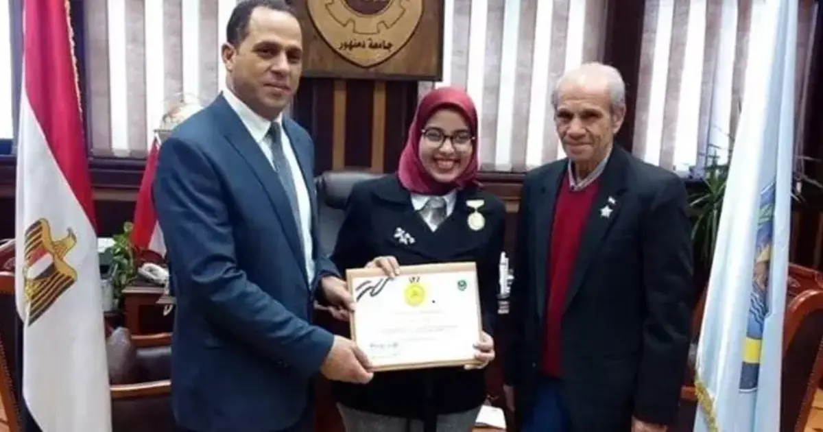 رئيس جامعة دمنهور يمنح وسام التميز لطالبة «سرقة الموتوسيكل»
