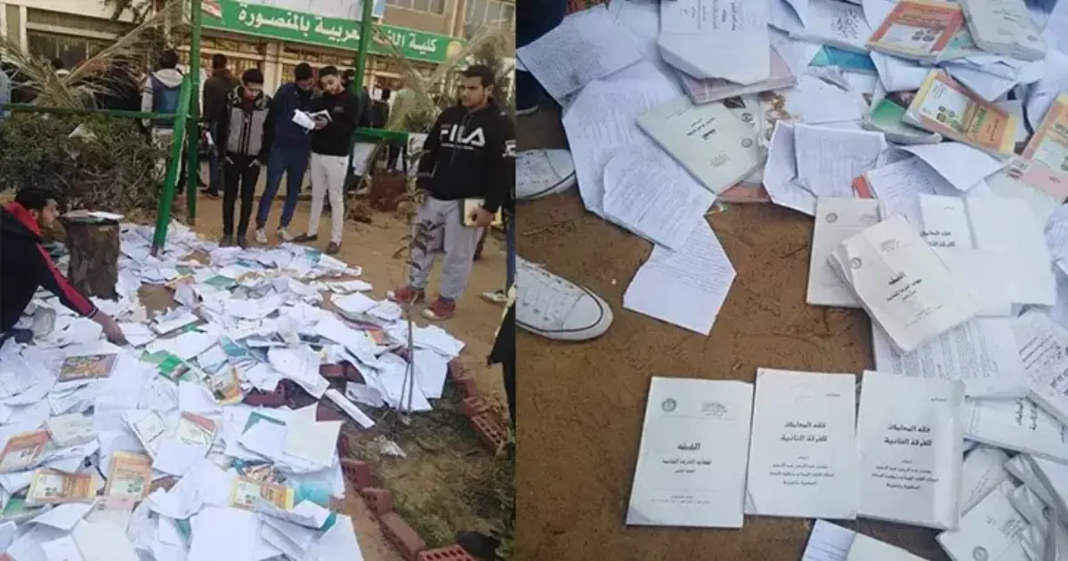عبر عدد من طلاب كلية اللغة العربية جامعة الأزهر فرع المنصورة عن استيائهم بسبب رمى الكتب والأوراق المتعلقة بالامتحانات في الملاعب.