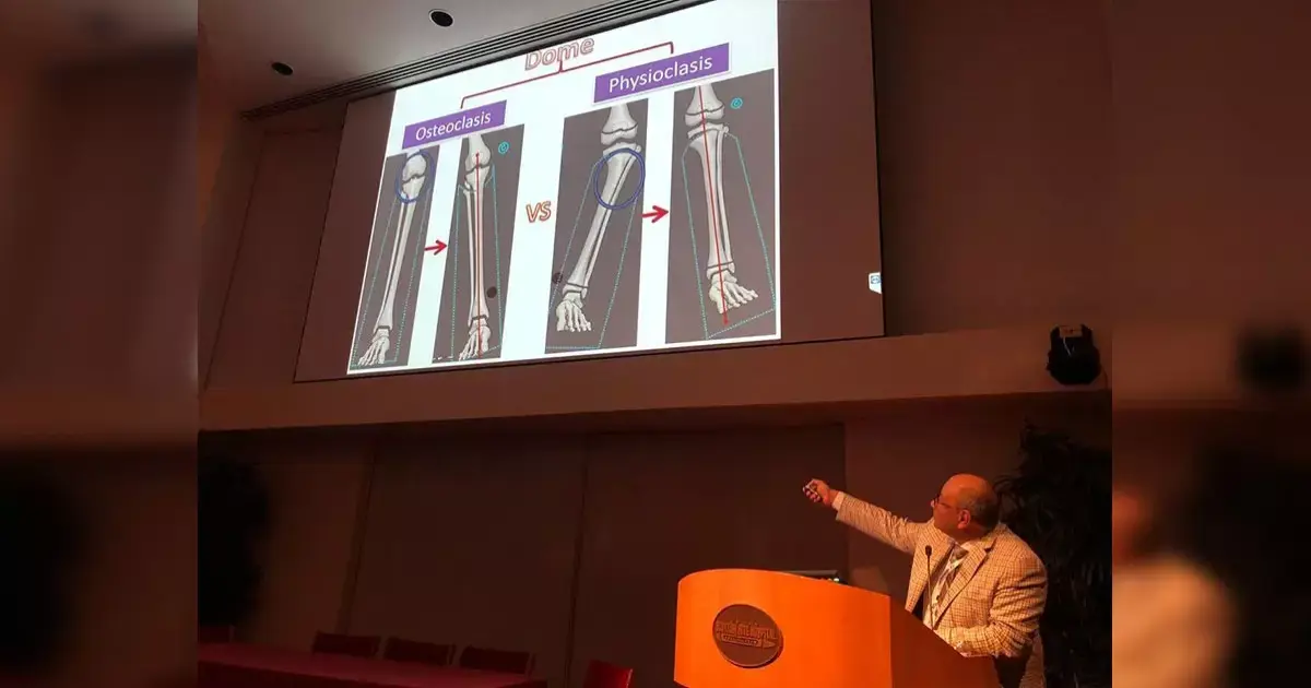 ألقى أستاذ جراحة العظام بكلية الطب جامعة الأزهر بالقاهرة، الدكتور ياسر البطراوي، بحثه العلمي الجديد في مجال تقويم وإصلاح تشوهات العظام المعقدة الناتجة عن مرض بلاونت، في فعاليات المؤتمر الدولى المشترك الذي تنظمه جمعية عظام الأطفال الأمريكية بالتعاون مع جمعية التقويم والتطويل الأمريكية بمدينة دالاس، وسط مشاركة كبيرة لأساتذة وجراحي العظام من جميع دول العالم.