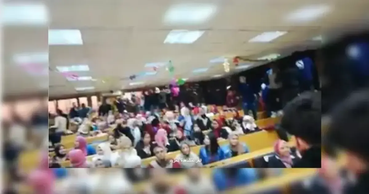وتداول رواد مواقع التواصل الاجتماعي مقطع فيديو لعدد من الطلاب داخل المدرج يرقصون على أنغام أغنية «حمو بيكا»