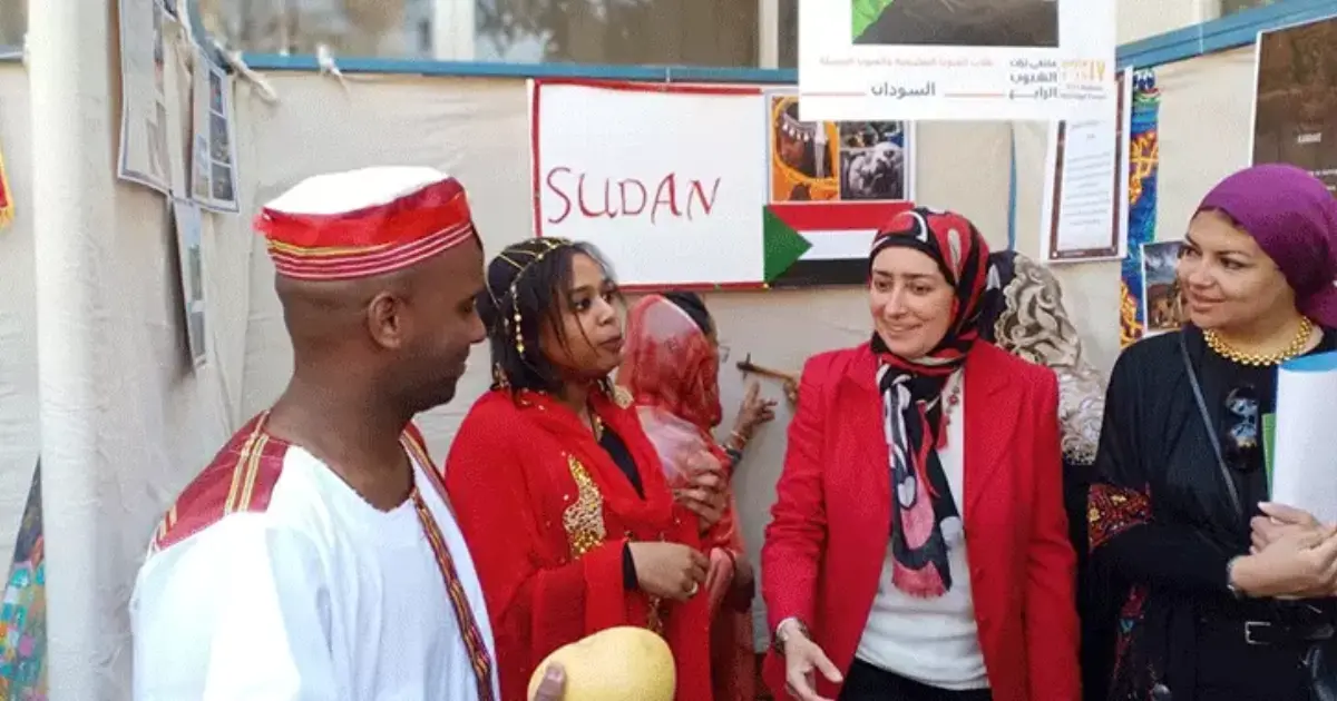نظمت كلية الفنون التطبيقية بجامعة حلوان بالتعاون مع مكتب الوافدين بالجامعة ملتقى تراث الشعوب الرابع؛ لتنمية معرفة الطلاب بالتراث الثقافي والحضاري للدول.