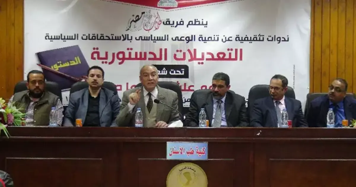 وقال في الندوة التي استضافتها كلية الحقوق، إن عدم تعديل الدستور بما يضمن استمرار السيسي في حكم مصر يقف أمام التنمية المستدامة التي تشهدها البلاد في عهده.