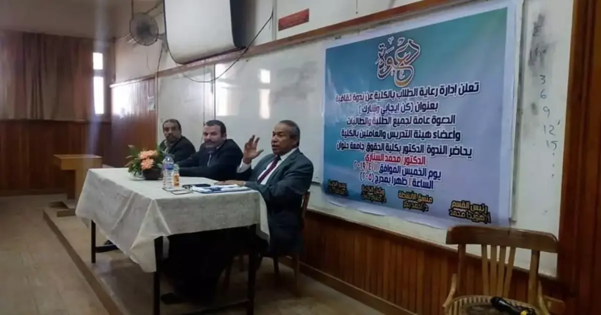 نظمت كلية التعليم الصناعي جامعة حلوان، اليوم السبت، ندوة ثقافية عن التعديلات الدستورية المقترحه بعنوان «كن ايجابي وشارك»، حاضر فيها أستاذ القانون الدستوري بكلية الحقوق جامعة حلوان، الدكتور محمد عبد العال السناري، ووكيل كلية التعليم الصناعي، الدكتور حسام حسن.