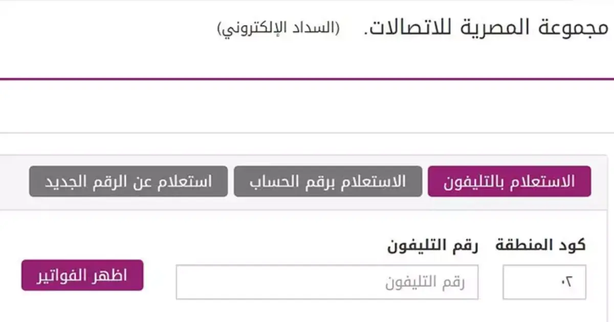 يمكن الاستعلام عن فاتورة الخط الأرضي من هنا من خلال وضع كود المحافظة ورقم الخط الأرضي.
