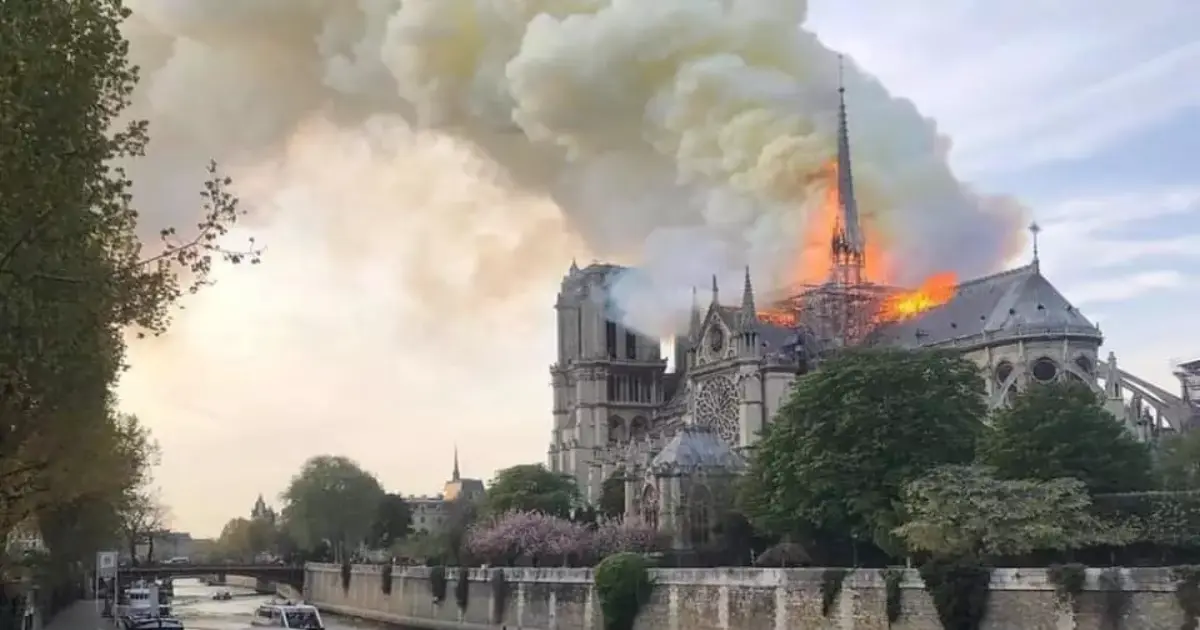 والتهم الحريق قمة البرج العملاق للكاتدرائية الذي انهار على أثر ذلك.