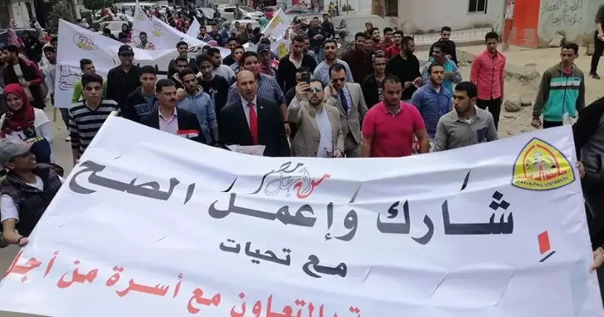 اتحاد طلاب جامعة الزقازيق ينظم مسيرة لحث المواطنين على المشاركة في التعديلات الدستورية