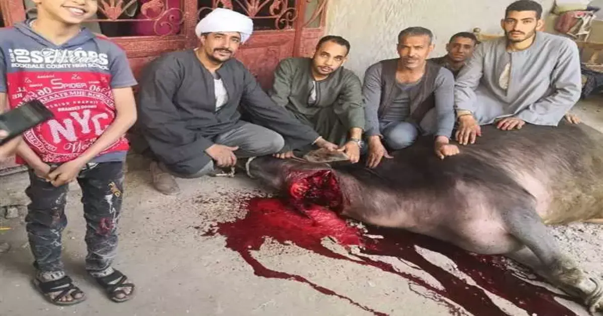 قام المواطن وليد عزت زيدان بذبح عجل على باب لجنته بقرية بني حسين دائرة مركز أسيوط قبل دخوله للإدلاء بصوته في الاستفتاء على التعديلات الدستورية.