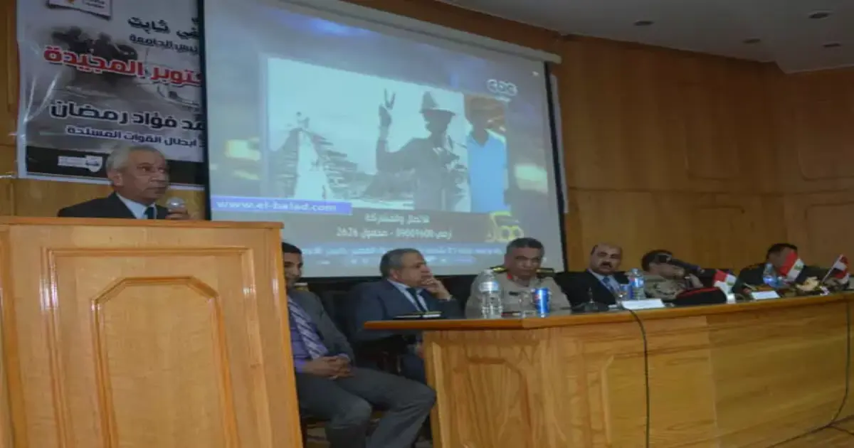 نظمت جامعة الفيوم بحضور رئيسها الدكتور خالد إسماعيل حمزة، ندوة بعنوان «مصر المكان والمكانة»، اليوم الأحد، بقاعة المؤتمرات بالمكتبة المركزية، بمشاركة العميد أسامة الجمال، المدرس بكلية الدفاع الجوي، والعقيد عمرو فايد، المستشار العسكري لمحافظة الفيوم، وأحمد فؤاد رمضان، أحد أبطال حرب أكتوبر. وذكر الدكتور خالد حمزة، رئيس الجامعة، أن أبطال حرب 6 أكتوبر هم العامل الأساسي فى إعادة الكرامة والعزة للوطن، وكان شعارهم أثناء الحرب قوله تعالى «إن تنصروا الله ينصركم ويثبت أقدامكم»، مؤكدا على أن أسرار الحرب لازالت طي الكتمات لم يفصح عنها التاريخ حتى الآن، وأنها من الحروب التى كان لها أثر عظيم فى اتحاد وتكاتف الشعوب العربية. وتحدث العميد أسامة الجمال، عن سلاح الجو، موضحا أن مهمته كانت حماية المجال الجوى لمصر وقت الحرب، أما فى وقت السلم فدوره تأمين الطيران المدني من حدوث أى مشاكل تؤدى إلى سقوط الطائرات أو تعطيل محركاتها.