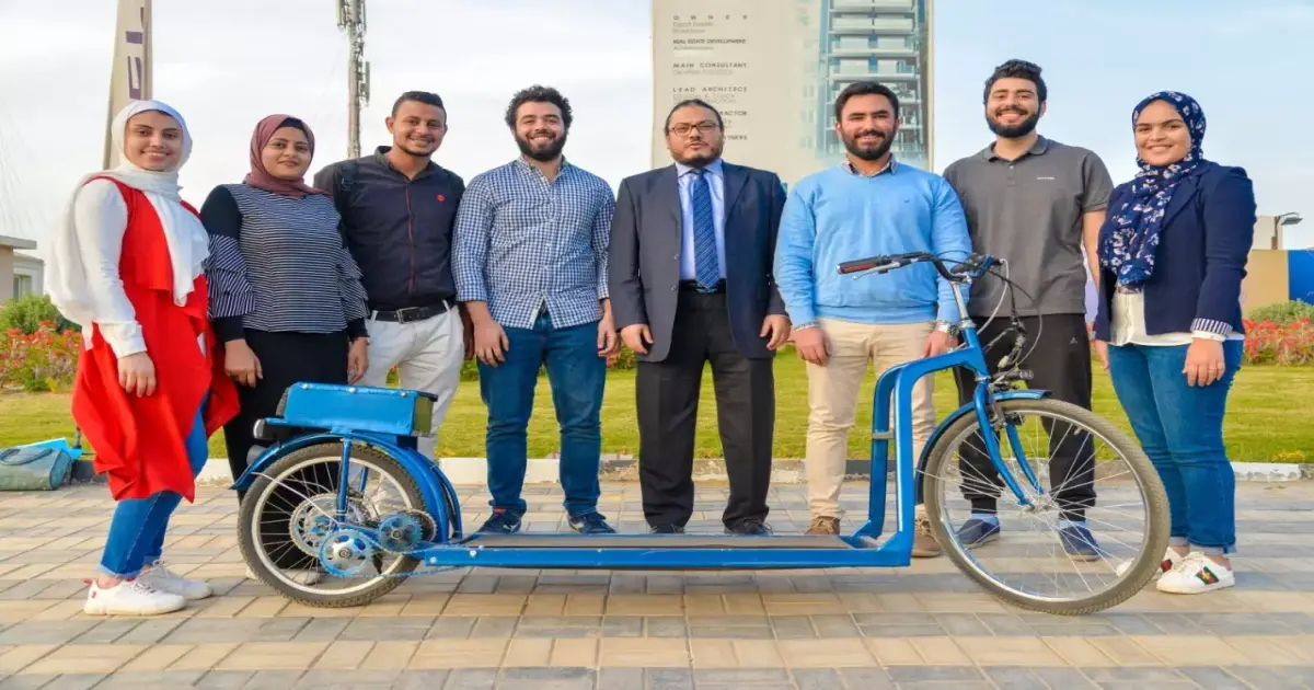 ابتكر فريق من طلاب قسم الهندسة الميكانيكية بكلية الهندسة جامعة حلوان مشاية رياضية متنقلة تساعد على حل مشكلة الازدحام كما تساهم بشكل فعال في ممارسة الرياضة.