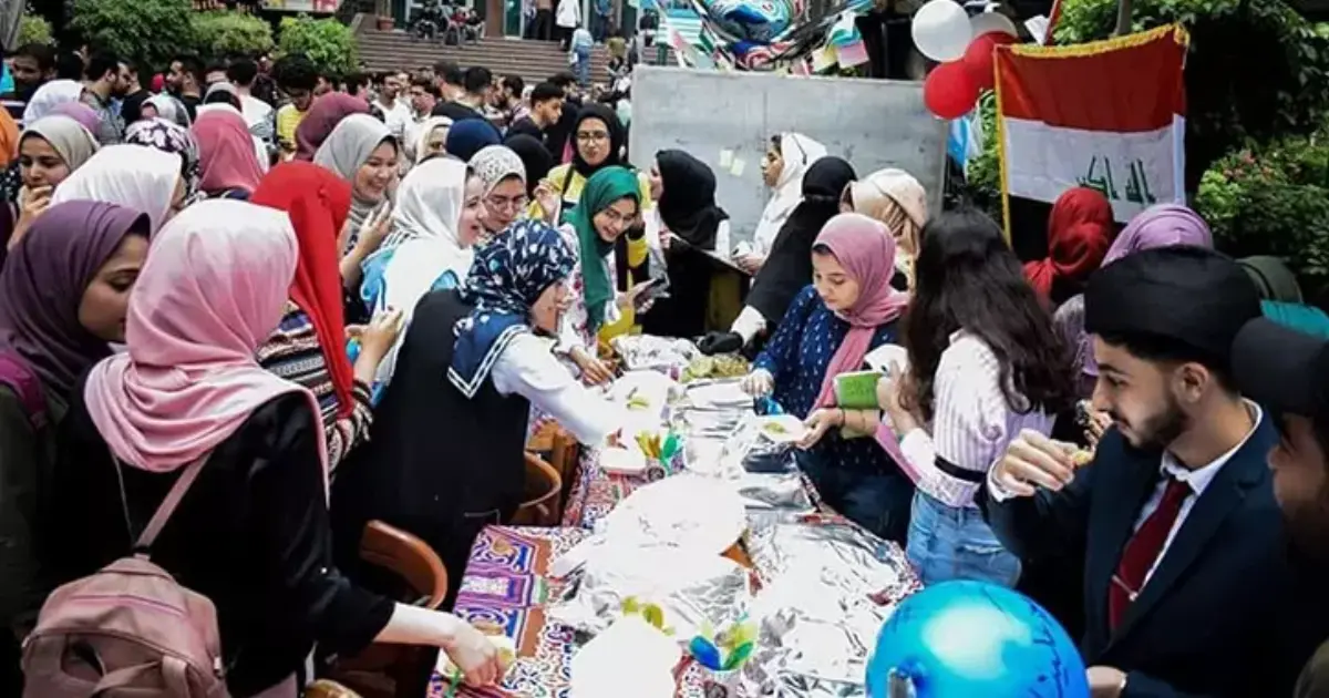 وشارك في الاحتفالية 5 وفود وهم: «موريتانيا وفلسطين وسوريا والعراق والسودان»، وقدموا عروضا للتعبير عن هويتهم وثقافة بلدهم من خلال الأكلات المشهورة ببلدهم وعرض التراث الشعبي وأيضا المنتجات التي تتميز بها بلادهم.