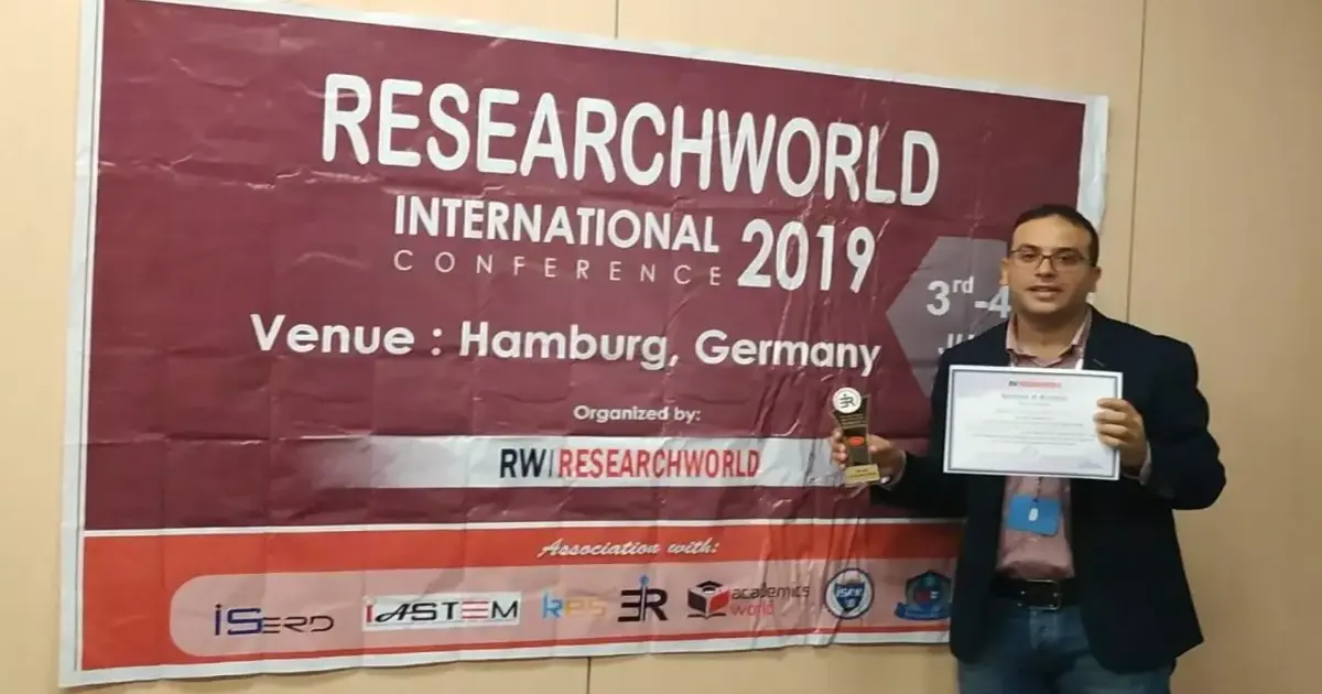 أستاذ بجامعة بني سويف يفوز بجائزة أفضل بحث بمؤتمر هامبورج بألمانيا