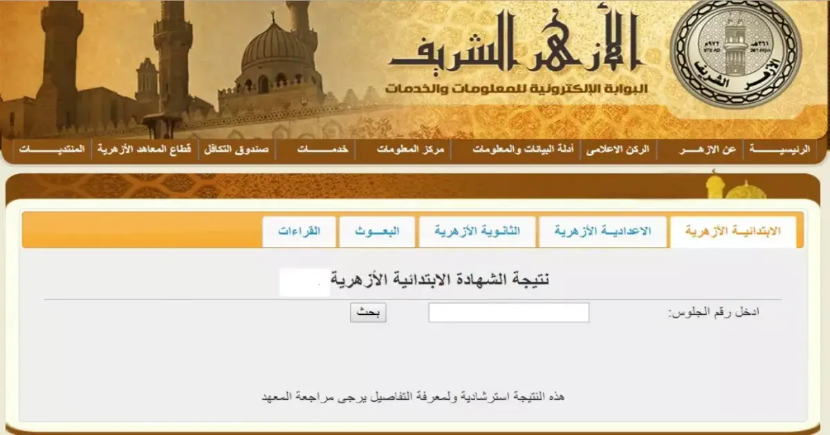 وفي حال الدخول على موقع بوابة الأزهر الإلكترونية يتم الاستعلام عن النتيجة برقم الجلوس.