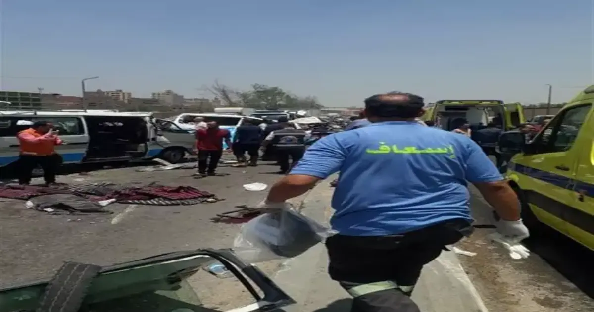 كانت غرفة عمليات النجدة، تلقت بلاغا من الخدمات المعينة على كوبرى طرة، بطريق الأوتوستراد، بوقوع حادث مرورى نتج عنه وفاة 14 وإصابة 10 أشخاص، و على الفور انتقل رجال المرور إلى المكان لتسيير حركة السيارات.