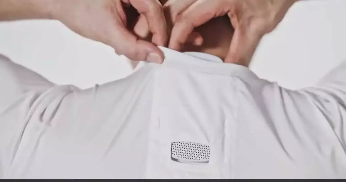 ويتم وضع جهاز التبريد المحمول في جيب قميص مصمم خصيصا لهذا الغرض، في الجزء العلوي من ظهر الشخص.