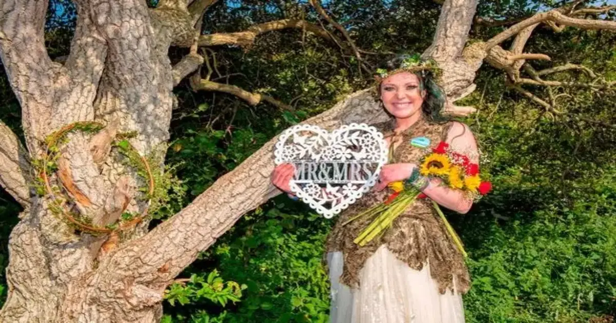 قررت فتاة بريطانية تبلغ من العمر 34 عاما الزواج من شجرة، وأقامت حفل زفاف دعت فيه عائلتها وأصدقائها وجيرانها.