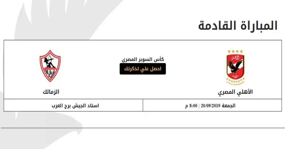 لحجز تذكرة مباراة السوبر بين الأهلي والزمالك اضغط هنا.