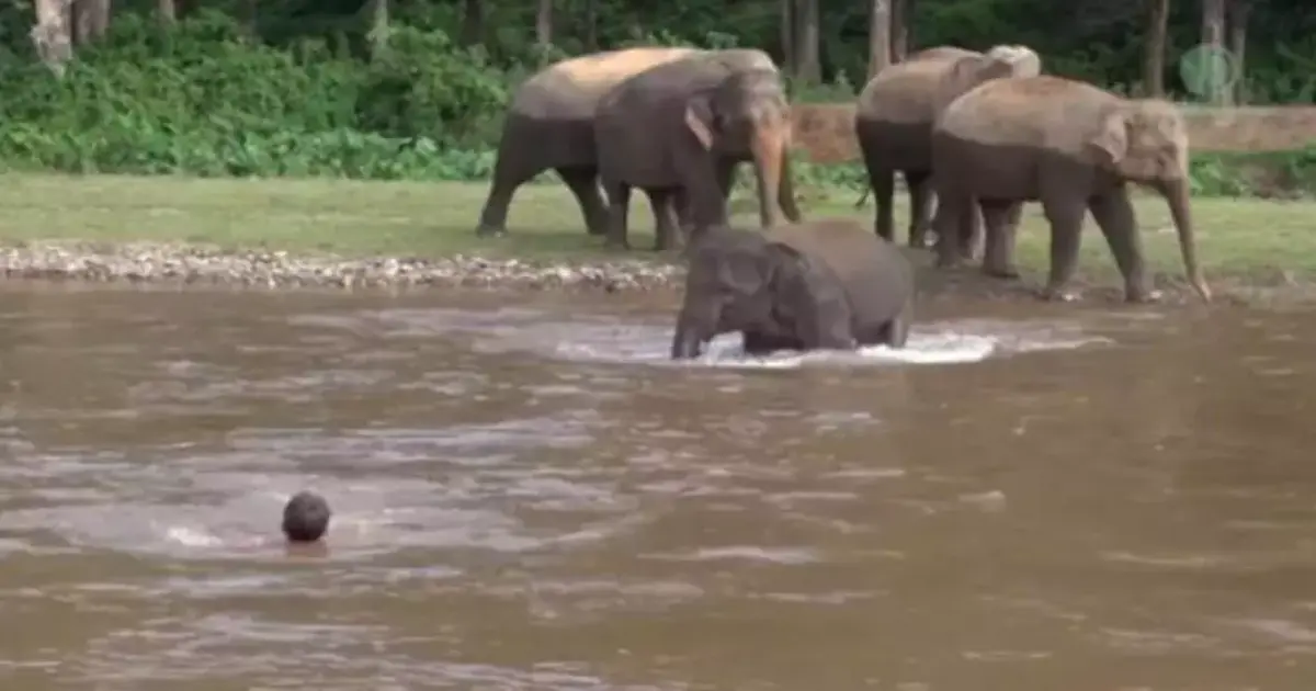 فيل صغير ينقذ شابا من الغرق (فيديو)