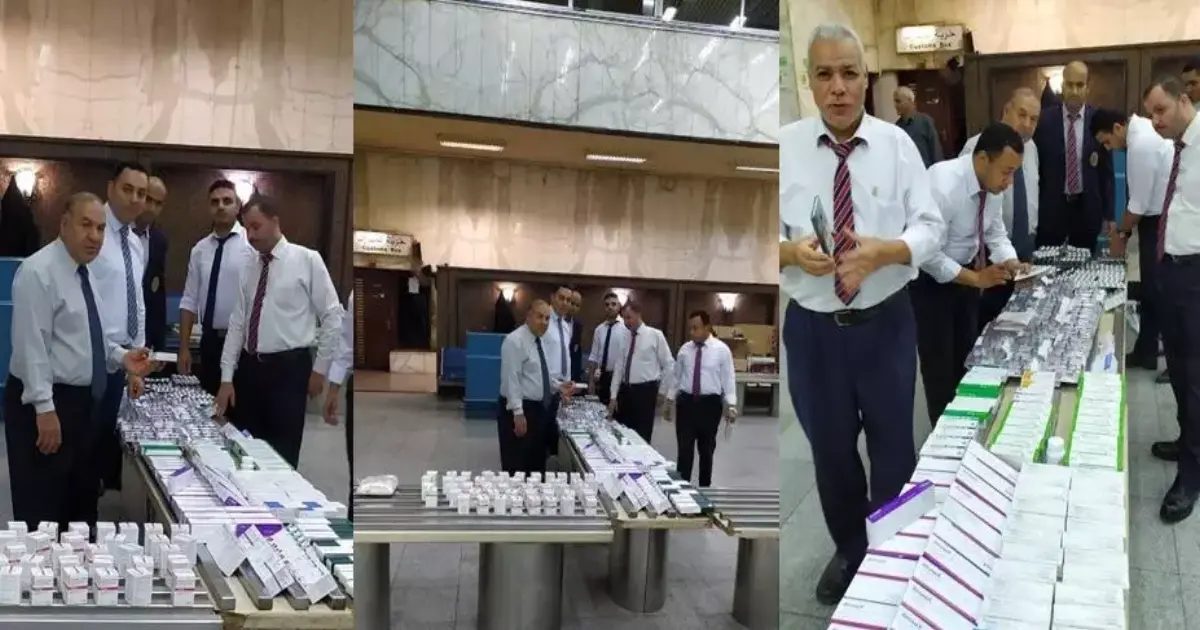 المضبوطات كانت عبارة عن 308 عبوات أدوية السرطان من حقن وشرائط أدوية وأمبولات وغيره مخبأة بين طيات الملابس.
