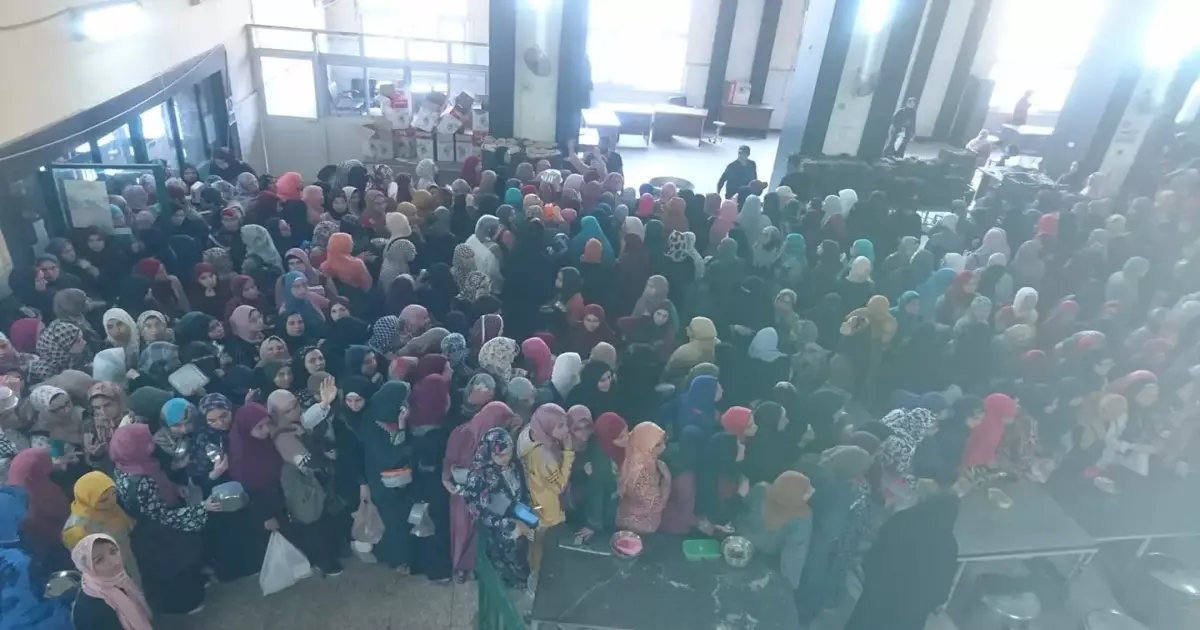 تزاحم طوابير طالبات الأزهر في مطعم المدينة الجامعية (فيديو)