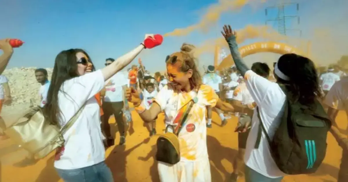 قبلات ورقص وأحضان في سباق الألوان بالرياض (فيديو)