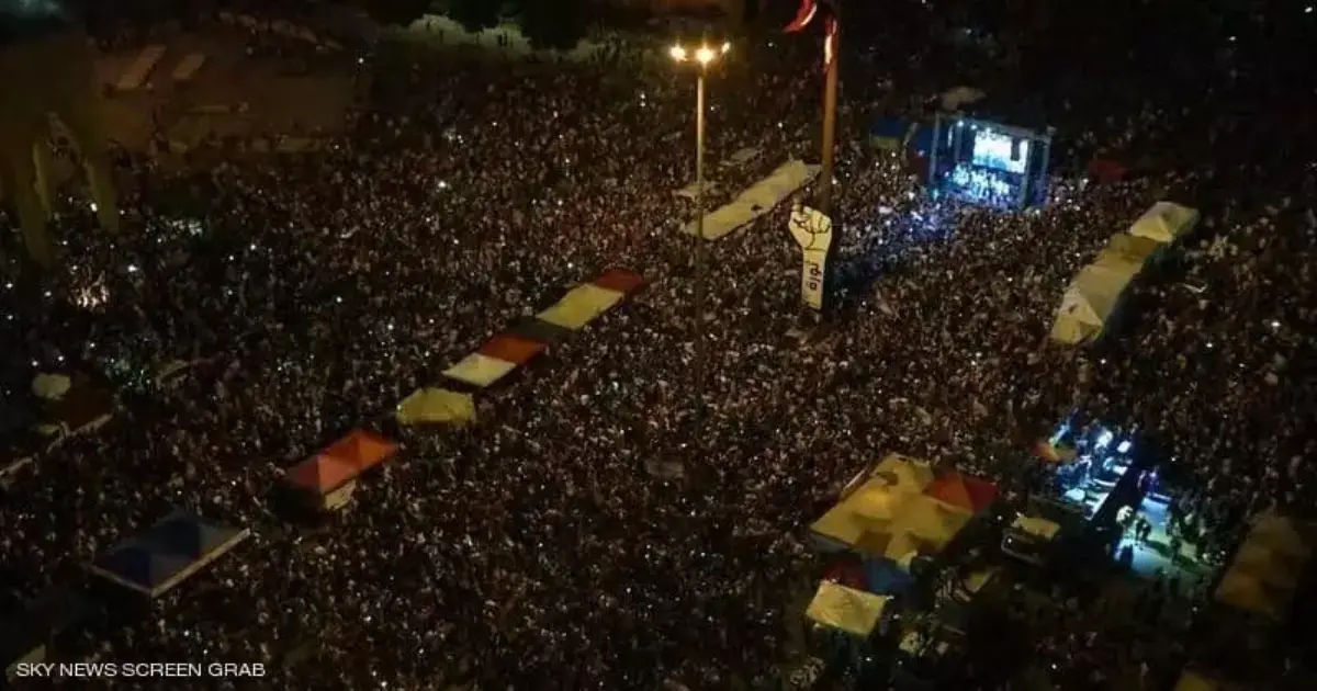 وقال مراسل سكاي نيوز عربية إن المتظاهرين يطالبون بتشكيل حكومة جديدة ومحاربة كافة أشكال الفساد وتحقيق الإصلاح السياسي والاقتصادي المنشود.