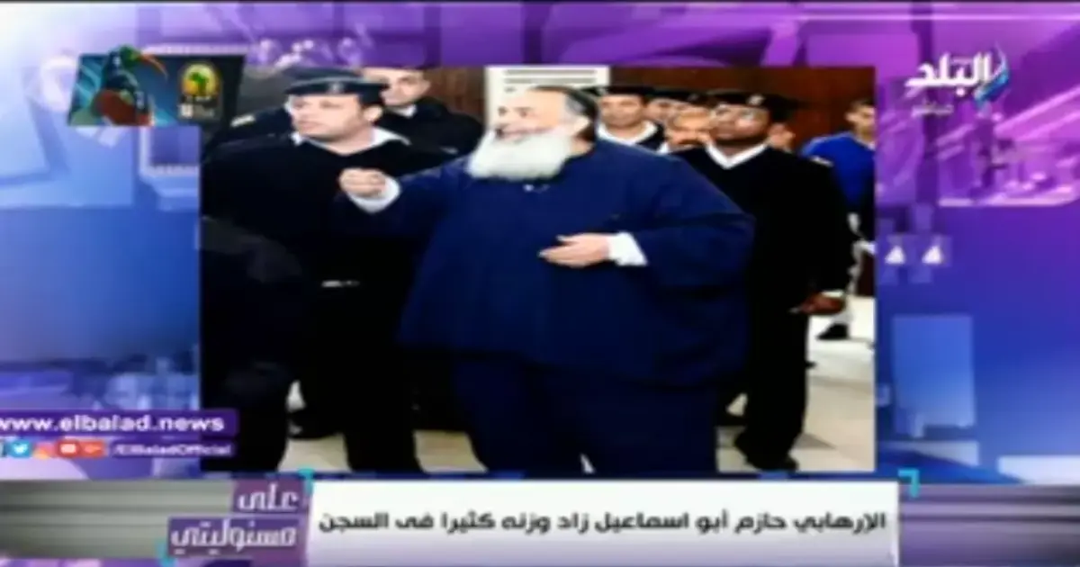 وأضاف مقدم برنامج على مسئوليتي، «أبو إسماعيل بياكل كتي، ووزنه زاد 50 كيلو فى 6 سنوات، مش كيلو ولا اتنين ولا عشرة، قاعد بيتعلف كل يوم فى السجن وبقى مش قادر يمشي من التخن، المفروض يعمل رياضة ، ولازم يلعب رفع اثقال ويكون بطل عالم».