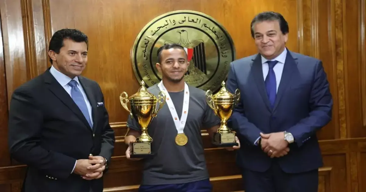 كرم وزيرا التعليم العالي والبحث العلمي، الدكتور خالد عبدالغفار، ووزير الشباب والرياضة، الدكتور أشرف صبحي، بتكريم منتخب جامعات مصر الفائز ببطولة التسامح العربية لكرة الصالات بأبوظبي، أمس الإثنين