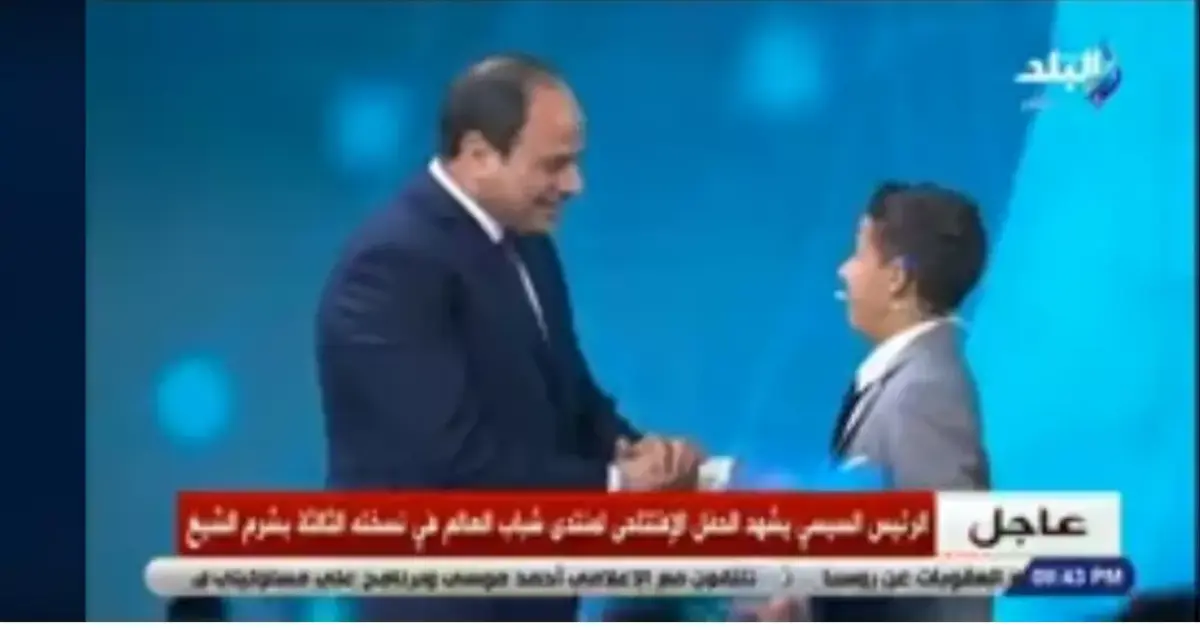 طلب الرئيس عبد الفتاح السيسي، مصافحة الطفل زين يوسف، قاهر السرطان، عقب إلقائه كلمته خلال الجلسة الافتتاحية لمنتدى شباب العالم في نشخته الثالثة، المقام بمدينة شرم الشيخ.