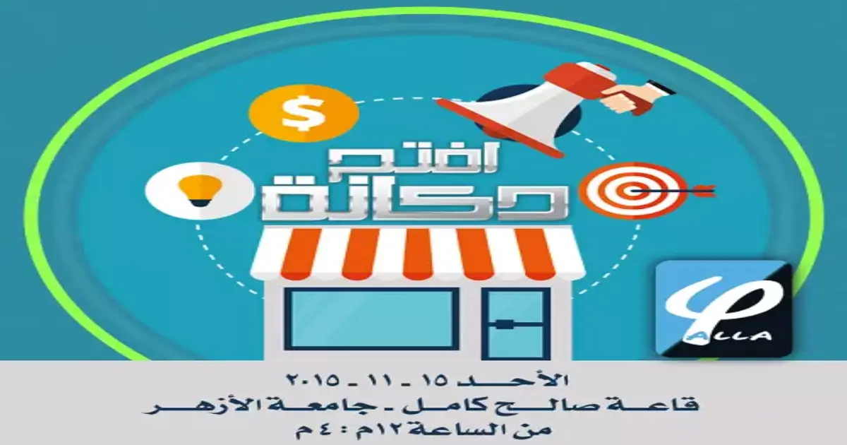 ينظم فريق «يلا تيم» الطلابي، بمركز صالح كامل للاقتصاد الإسلامي بجامعة الأزهر بالقاهرة، ندوة بعنوان «افتح دكانة»، يوم الأحد الموافق 15- نوفمبر 2015.