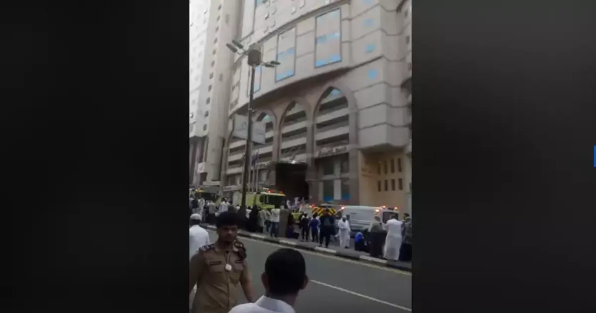 شاهد حريق هائل في فندق بمكة يضم نزلاء مصريين