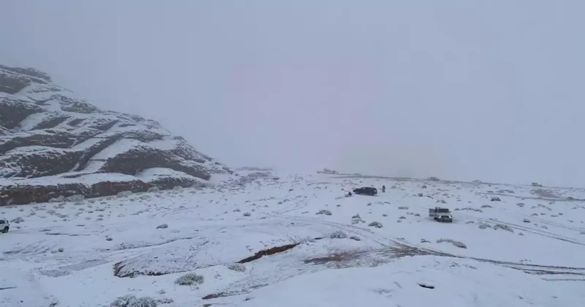 صور وفيديوهات تساقط الثلوج على تبوك في السعودية