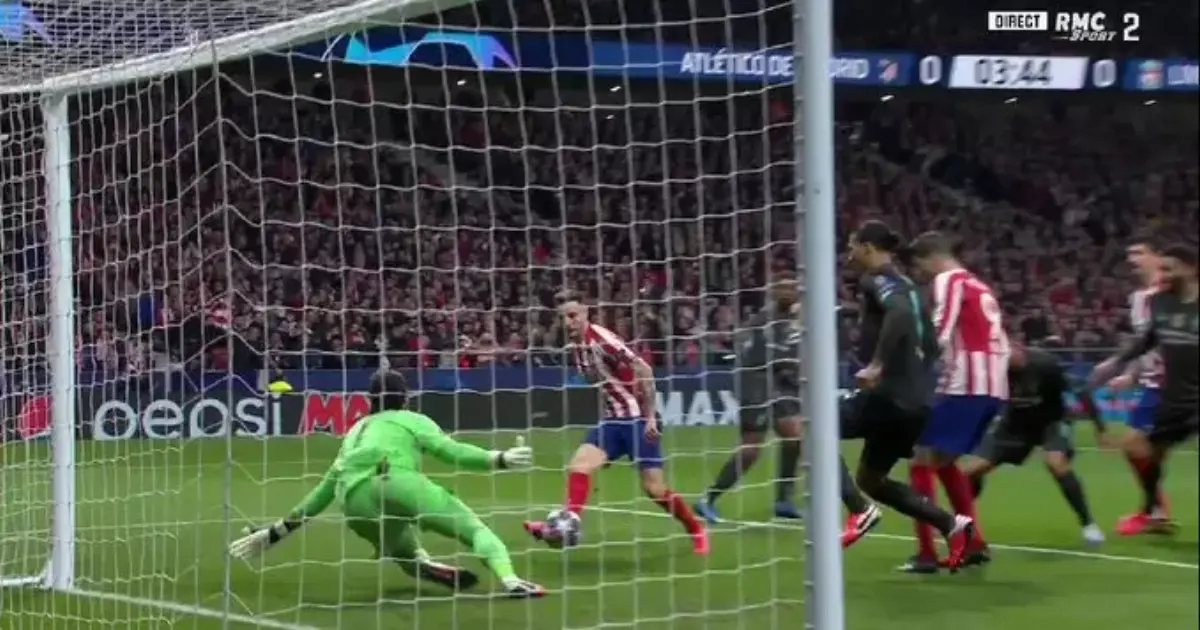 سجل نادي اتليتكو مدريد هدفه الأول في شباك فريق ليفربول، في وقت مبكر من عمر الشوط الأول للمباراة التي تجمع الفريقان في دور الـ16 لبطولة دوري أبطال اوروبا.