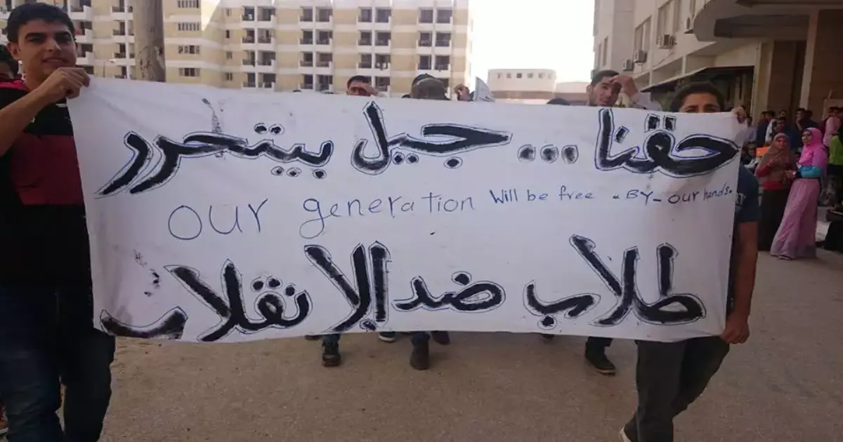وبحسب صفحتهم الرسمية على موقع التواصل الاجتماعي «فيس بوك»، «رفع الطلاب شارات رابعة العدوية، ولافتات مكتوب عليها (حقنا، وجيل بيتحرر)، ورددوا هتافات مناهضة للنظام.»