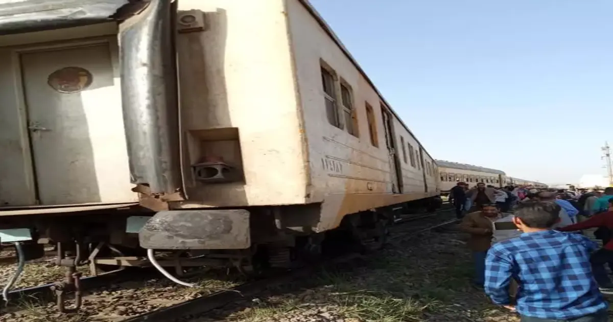 عربة قطار تخرج عن شريط السكة الحديد في المنيا