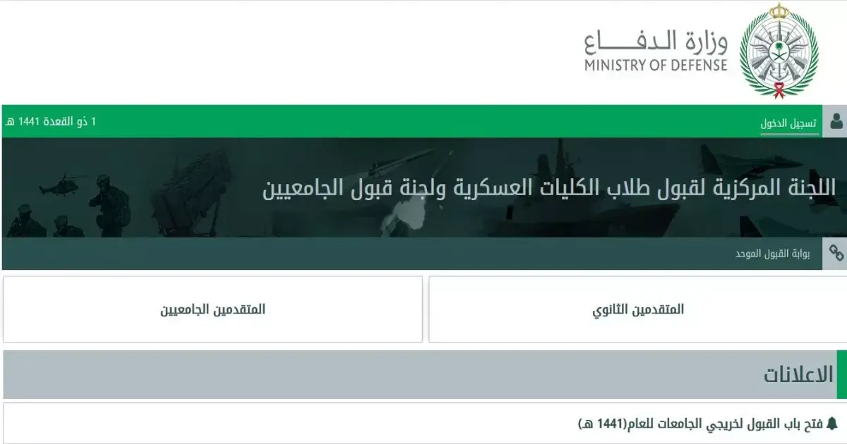 ينشر موقع شبابيك رابط بوابة القبول الموحد للقوات المسلحة للتقديم في الكليات العسكرية التابعة لوزارة الدفاع في المملكة العربية السعودية.