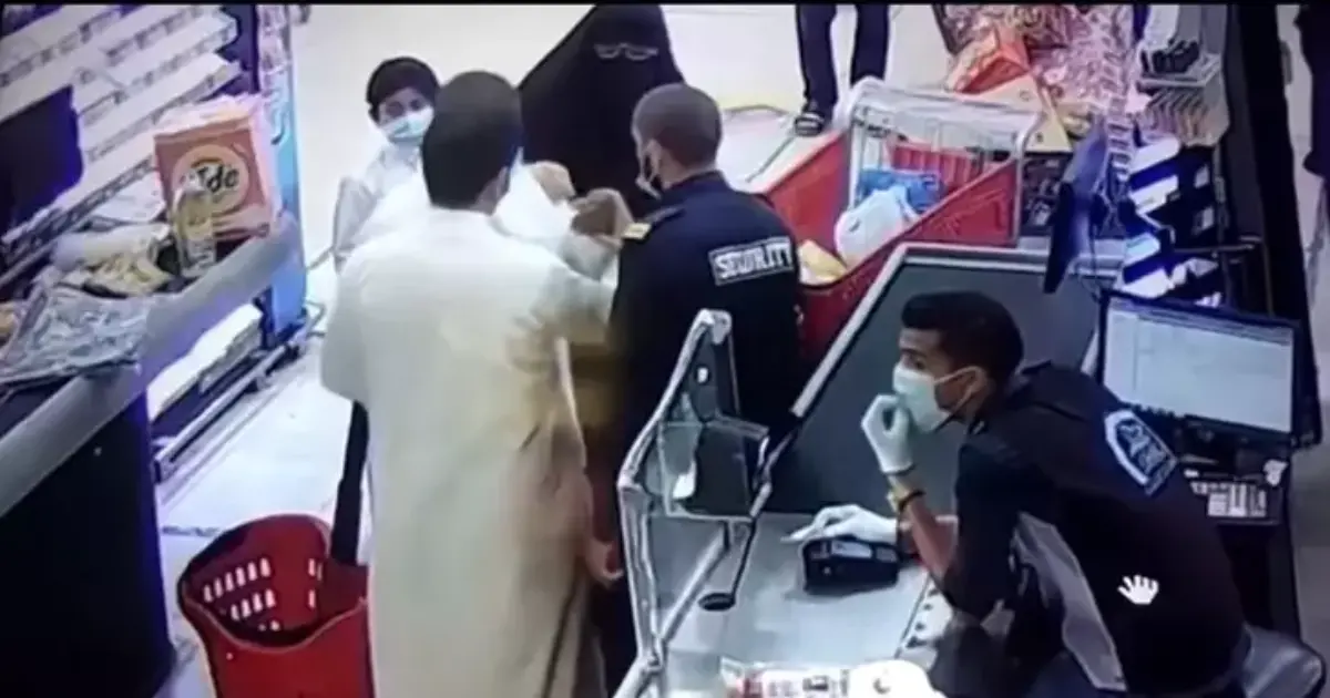 ووثقت كاميرات المراقبة المتواجدة في المركز التجاري الذي يعمل فيه المصري «كاشير» بينما يؤدي عمله، ويتوجه إلى مواطن مهاجما إياه ويبدأ بصفعه مرة تلو الأخرى.