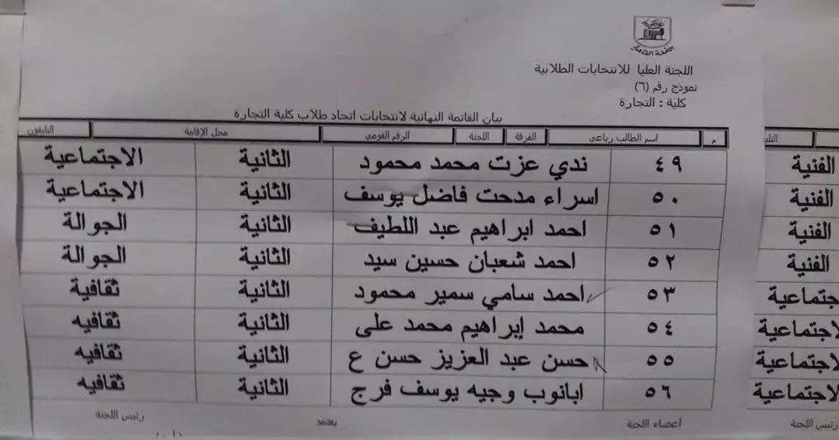 الكشوف النهائية لمرشحي اتحاد طلاب «تجارة القاهرة»