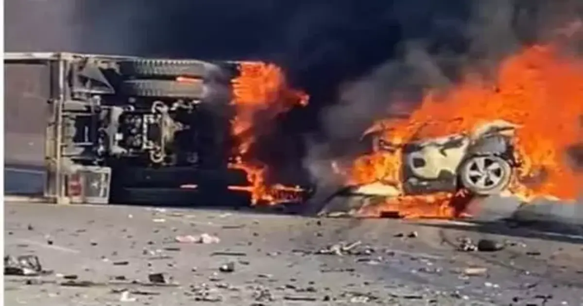 وانتشلت من السيارة الملاكي جثة متفحمة، وتبين إصابة سائق المقطورة ويدعى فريد علي السيد محمد 45 عاما.