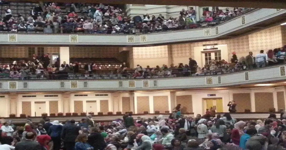 تزاحم طلاب جامعة القاهرة لحضور احتفالية الموسيقار عمر خيرت، على مسرح قبة جامعة القاهرة، وذلك بحضور رئيس الجامعة الدكتور جابر نصار.