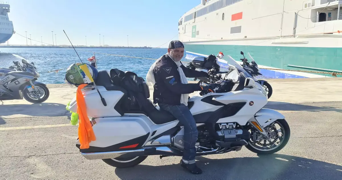 بالصور مسن مصري يؤدي العمرة على الموتوسيكل