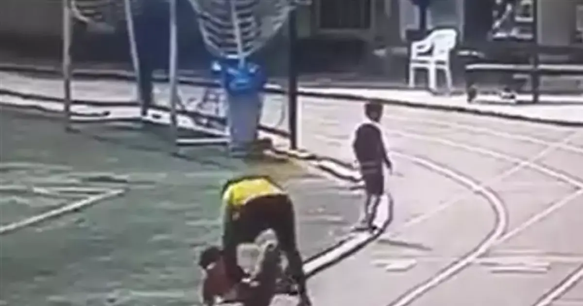 تدخل شاب من أحد الفرق الرياضية ليدفع الرجل ويبعده عن الطفل الذي سقط أرضًا من قوة الضربة الأولى التي توجهت له، وسرعان ما التفت مجموعة من باقي الفريق الذين حرصوا على تخليص الطفل من يد هذا الرجل العنيف.